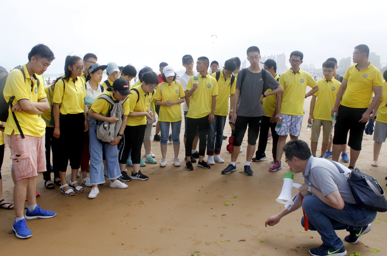 “金沙滩是怎么形成的?”“为什么金沙滩的沙子会这么细呢?”“金沙滩的浪似乎跟唐岛湾还不一样!”第一次零距离接触专业地质知识,让营员们非常兴奋,纷纷提出自己的疑问。来自烟台开发区第一高级中学的营员王靖雯表示,这样一次野外的实地考察对他们来说很“解渴”,极大地激发了大家对地质知识的兴趣,让营员们对地质行业有了全新的认识。“我在地理书上看到过海水侵蚀,但没想到它会产生这么多类型的地貌!地质之美无处不在,希望以后也有机会接触更多的地质知识!”