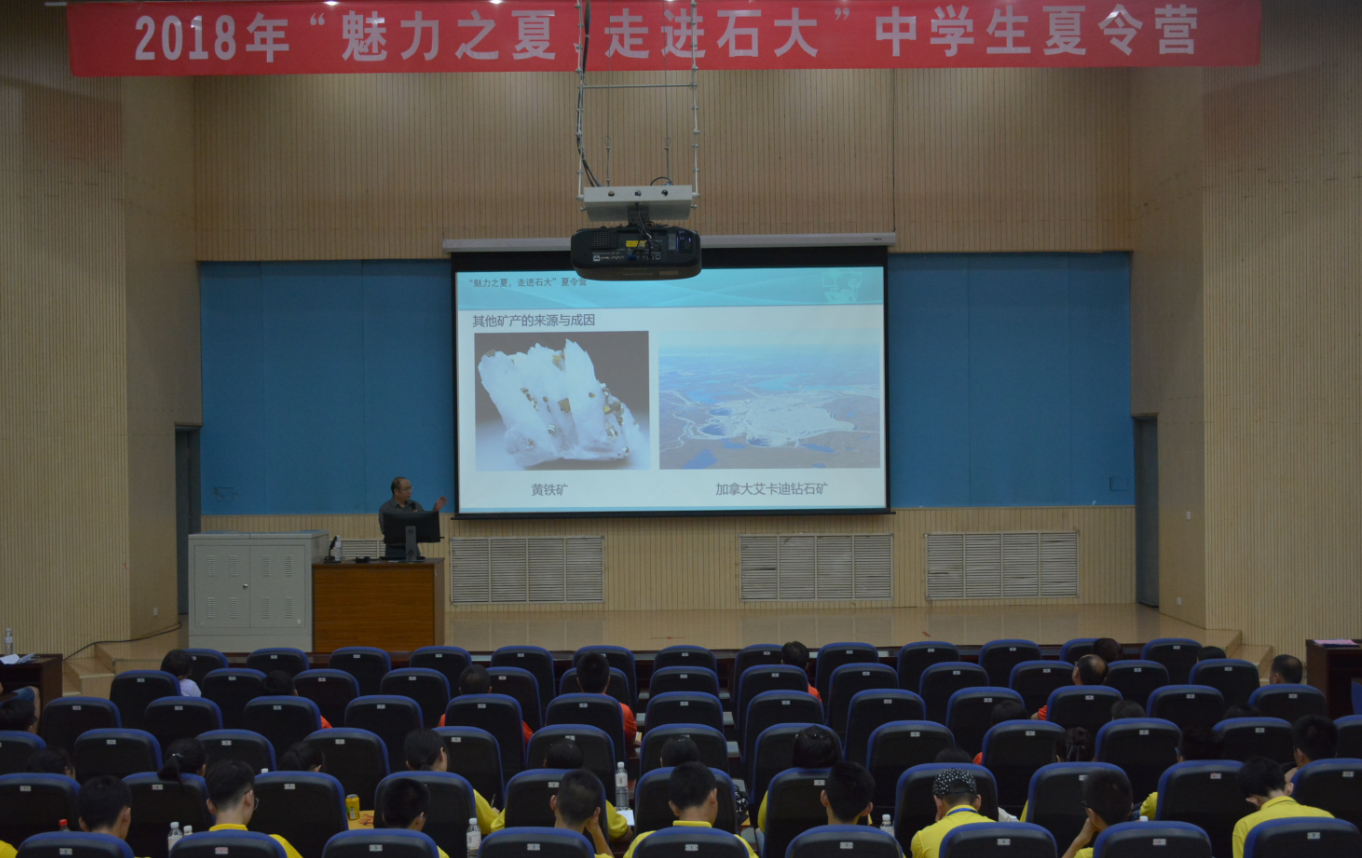 在本次的夏令营活动中,学院在各个环节中融入地学元素、石油特色,得到了学院专业老师们的大力支持。开幕式上章大港老师做《岩石的前世今生》科普讲座,以浅显易懂的方式为高中生解密岩石结构、剖析石油成因。