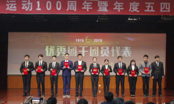 党委常委、党委办公室、校长办公室主任田丰为优秀团干团员代表颁发荣誉证书 许惠凯摄影