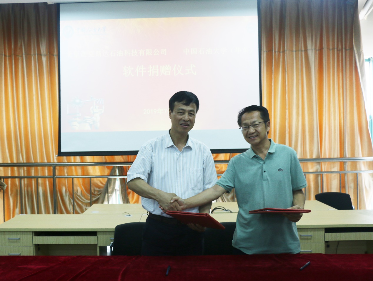 刘力辉总经理与林承焰院长签署Geoscope软件捐赠协议 刘金英摄影
