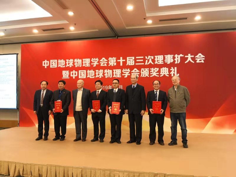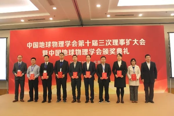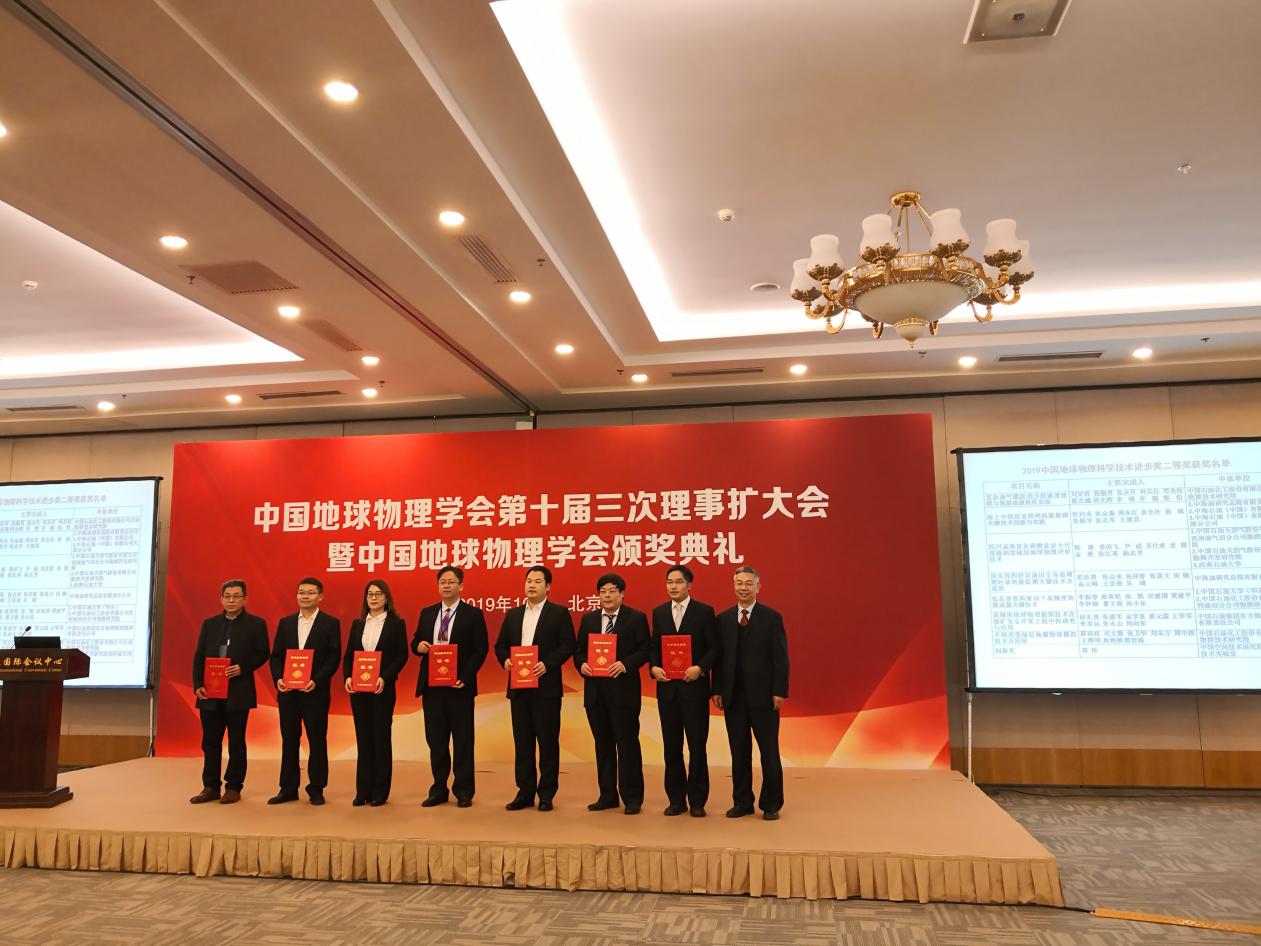 分别为中国地球物理科学技术创新奖一等奖与中国地球物理科学技术进步奖一等奖颁奖