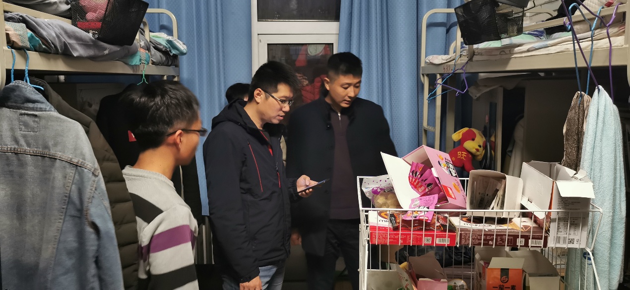 12月5日晚上,学院党委副书记徐永涛带领各年级辅导员进行学生公寓安全专项大检查,从新葡的京集团88142016级本科生所在的18号公寓开始,此次检查特别邀请了学校公安处消防科科长石鹏飞进行指导,深入学生宿舍一线,对安全状况进行全方位、无死角、地毯式检查,对于存在的安全隐患,采取“零容忍、严处理”的态度。