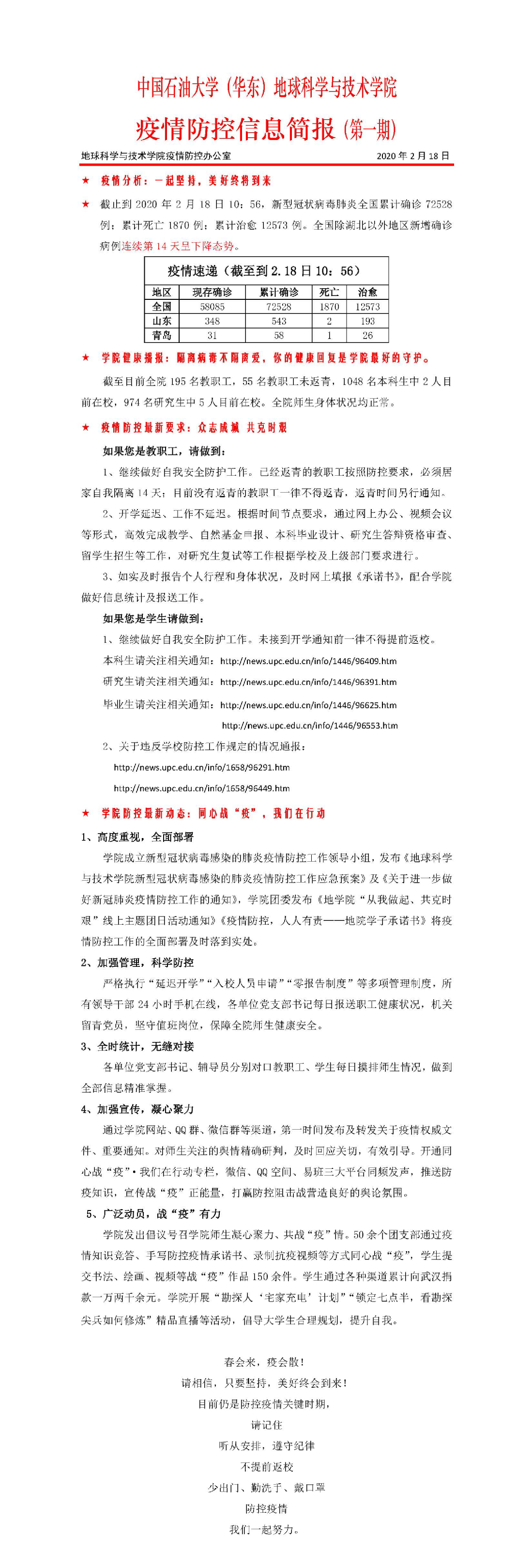 【疫情防控】新葡的京集团8814疫情防控信息简报第一期