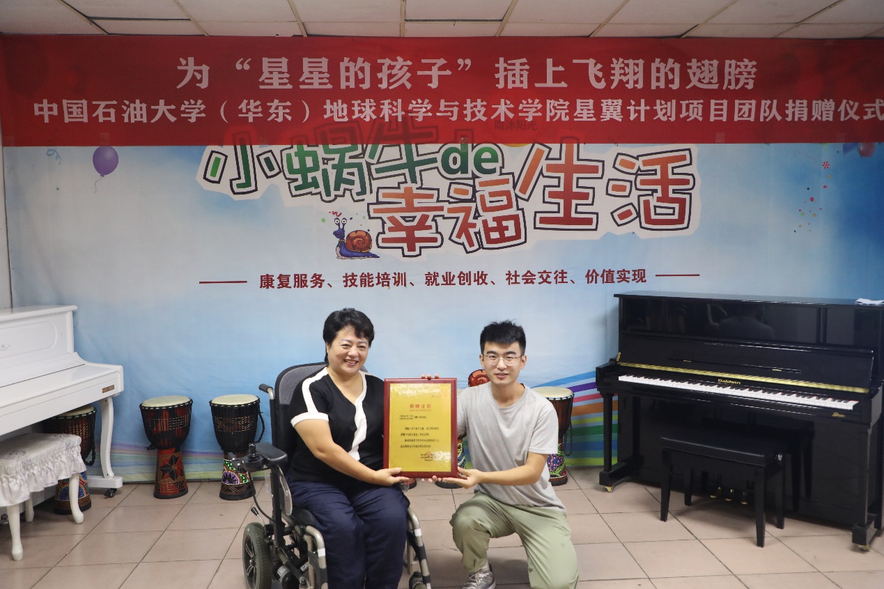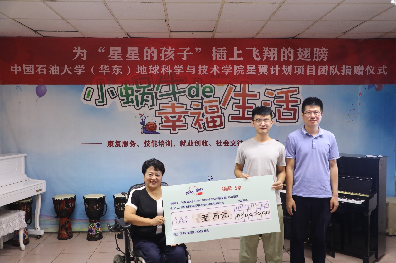 9月2日,学院星翼计划团队捐赠仪式在青岛市市北区同沐阳光残疾人辅助性就业中心举行。星翼计划团队捐出其在山东省第五届“互联网+”大学生创新创业大赛所获金奖的30000元奖金,设立星翼计划成长基金,支持更多大龄自闭症青年实现“康复+就业”。