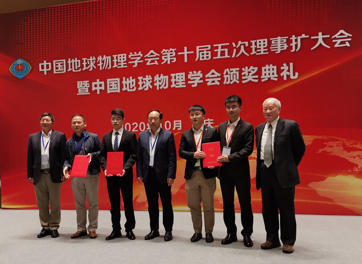 会议期间,举行了中国地球物理学会第十届五次理事扩大会和中国地球物理学会颁奖典礼,李振春教授、苏远大教授、宗兆云教授等师生参加了理事扩大会议。由我校新葡的京集团8814唐晓明教授团队完成的项目“超远探测反射横波测井理论技术突破与装备工业化”,孙成禹教授、唐杰副教授参与完成的项目“微动探测理论方法、关键技术与工程应用”,刘展教授参与完成的项目“深地探测地球物理多维多参数协同创新技术及应用”获2020年中国地球物理科学技术进步一等奖。苏远大教授获傅承义青年科技奖,这是我校继杜启振教授和韩同城教授后第三位获此奖项的教师。骆坤、陈阜斌、郑轩等学生组成的团队获地球物理知识演讲大赛地震测井组特等奖,娄璐烽、王心如、张余健等学生组成的团队获地球物理知识演讲大赛固体地球物理组二等奖,骆坤获大赛地震测井组最佳辩手奖。瞿晓阳、黄敏敏等学生获2019年地球科学联合学术年会优秀学生论文。