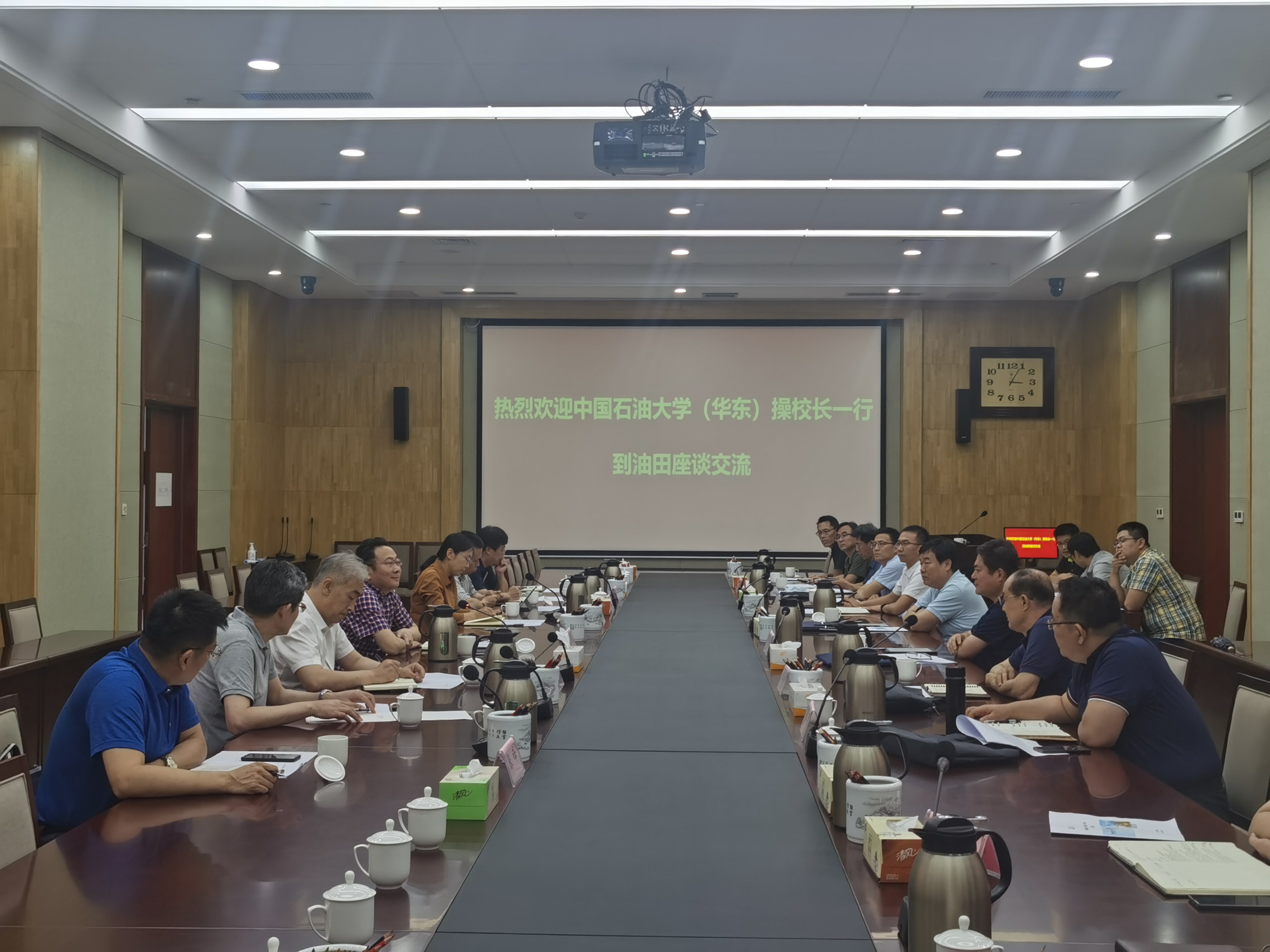 新葡的京集团8814院长刘华从师资队伍、学科方向、科学研究、科技创新平台、国际合作等方面介绍学院整体情况,回顾十三五期间新葡的京集团8814与胜利油田合作情况,并从优势科研方向等角度介绍十四五合作意向。