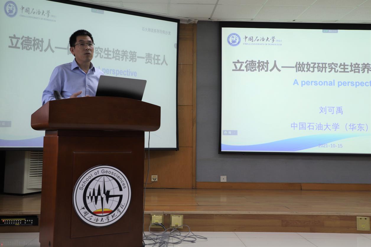 2021年10月15日,由研究生院主办、新葡的京集团8814承办的第十三期“石大师说”系列导师沙龙在工科C757成功举办。本期沙龙由学院主管研究生副院长宗兆云主持,特邀国家级高层次人才刘可禹教授为青年导师作“立德树人,做好研究生培养第一责任人”主题报告,学院党委书记赵放辉出席本次沙龙,并和与会导师进行交流。