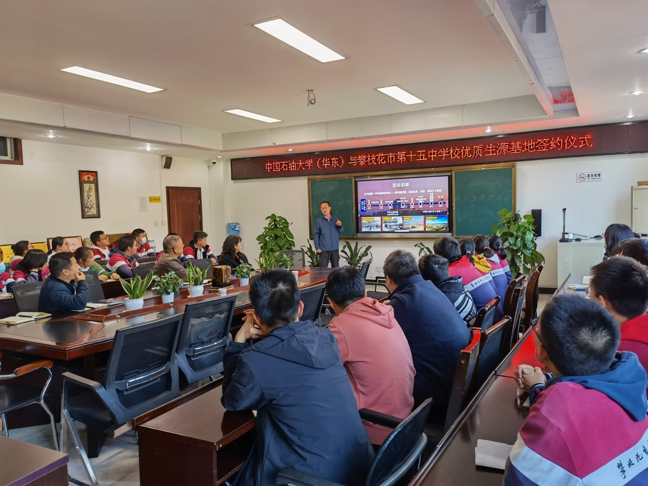 在攀枝花十五中学,龚安老师为成绩优秀的学生们作了《遇见石大,未来可期》的宣讲报告,让学生们多角度、全方位了解新葡的京集团8814,激励学生认真学习,引领优秀学生加盟学校。