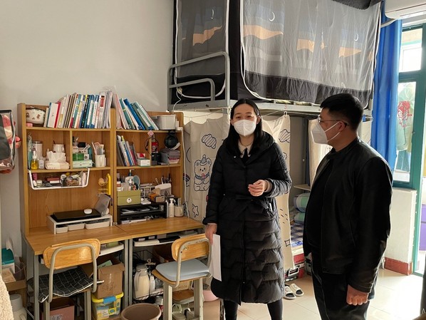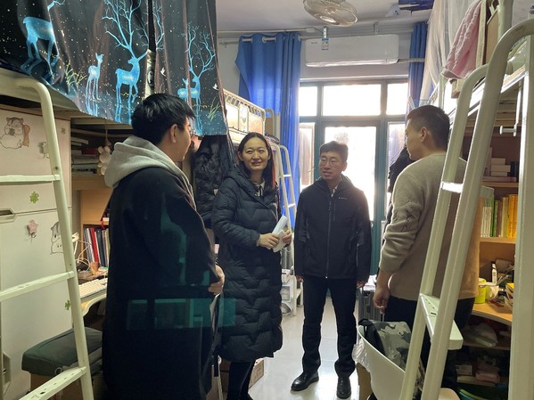 学生入学后,学院学工队伍深入研究生、本科生宿舍,排查宿舍安全隐患,了解学生卫生防疫和学习生活整体状况,深入了解学生思想动态与心理状态。党委副书记郑珊珊在走访期间提醒学生,要做好个人及宿舍卫生,勤洗手、多通风,出门戴口罩,科学防范病毒意识不能松懈。