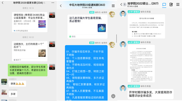 各年级在家长群、学生通知群中常态化发布防诈骗提示