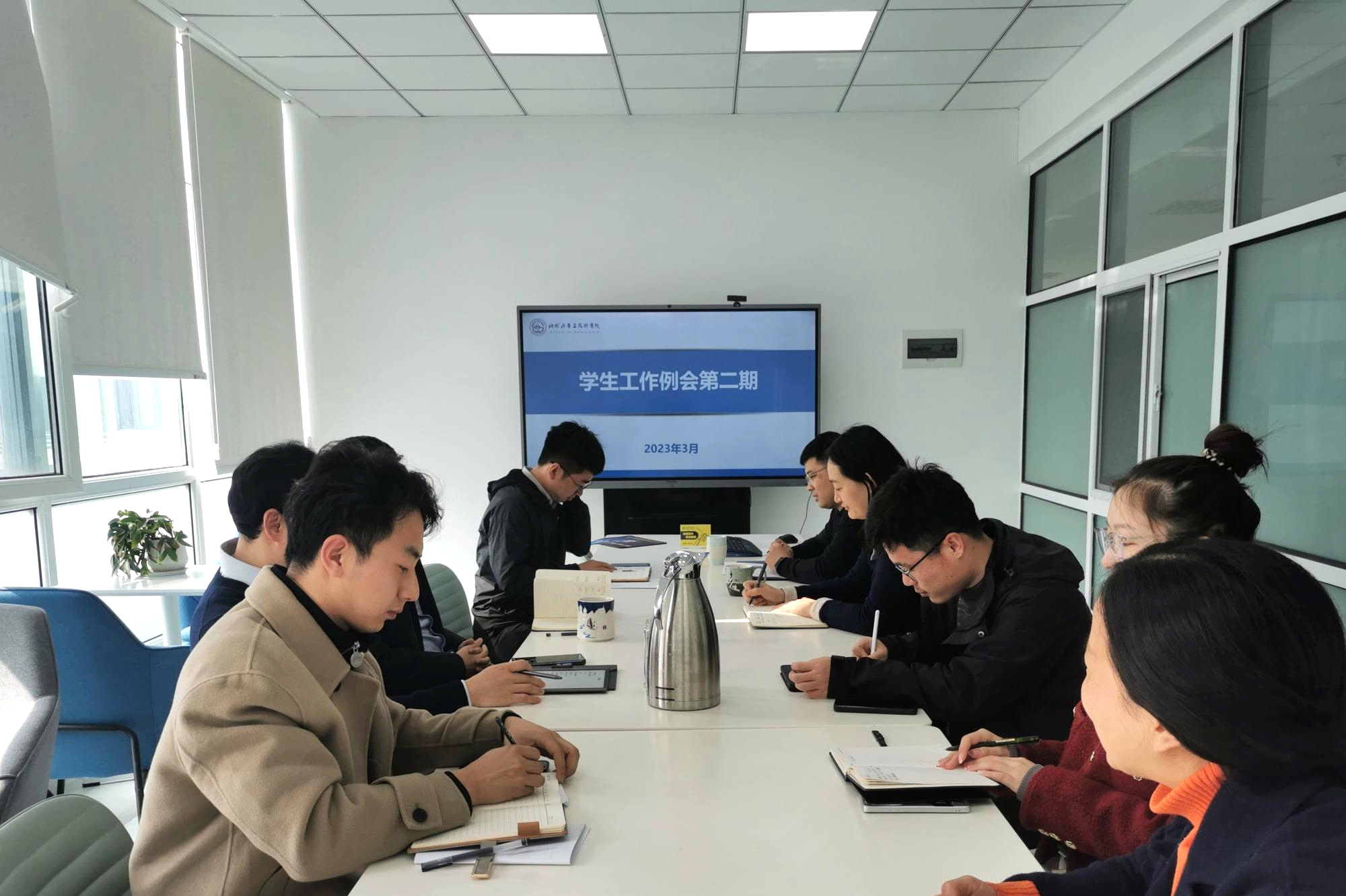 会议重点讨论了《新葡的京集团88142023年学生工作要点》,2023年学院学生工作将重点从完善思政教育体系、保障学生健康成长、助推学生卓越发展、构建三全育人新格局等4个层面16个方面开展,将大抓基础基层与争先创优相结合,助力学院新一轮“双一流”建设,努力培育担当民族复兴大任的时代新人。郑珊珊表示,工作要点是今年工作的总纲要和行动方案,学工队伍一是要认真研究如何高效将重点工作落实落地,主动守好自己的“责任田”;二是要通过“五进”等方式,及时深入学生学习生活环境,研判后疫情时期学生思想状态等新情况新动态;三是注重培优树尖,以“尖兵”示范效应激发全院学生争先创优的活力,助力一流人才培养。