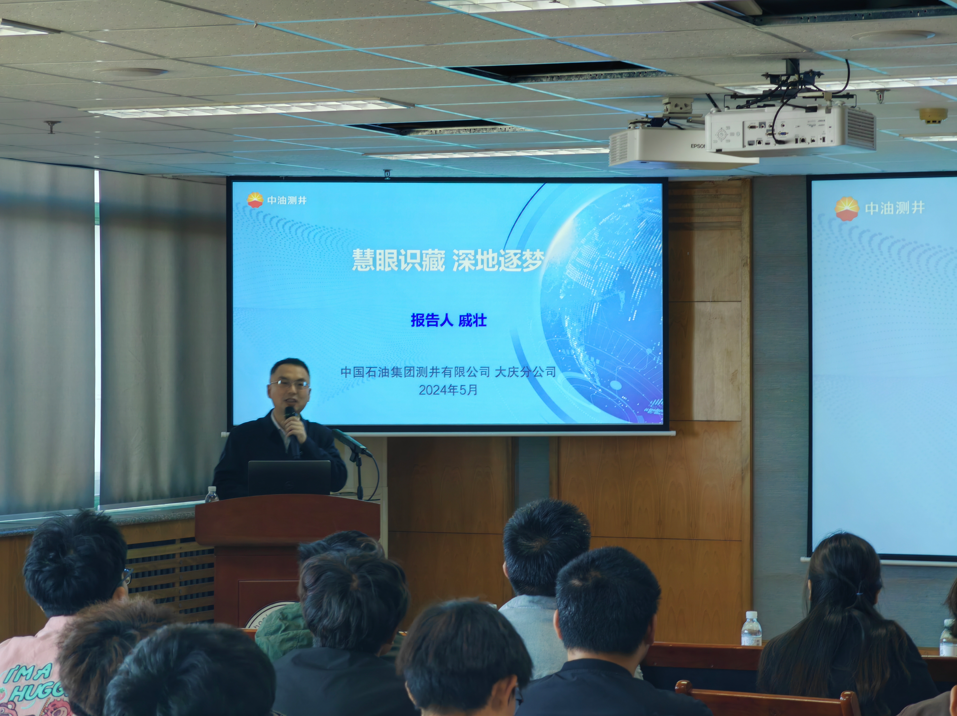 戚壮作“慧眼识藏 深地逐梦”报告,讲述了中油测井公司发展、测井学科及技术历程、能源行业人才培养与人才需求。他讲到,中油测井公司历经20余年的发展,锻造了以CPLog、CPPerf等为核心的服务技术体系和CIFLog-LEAD工业软件为核心解释评价应用技术系列,在测井射孔技术研发、装备制造、技术服务和资料应用等领域,已成为具有国际影响力的专业化测井服务公司。关于人才成长,中油测井全力打造测井“八大人才专项工程”,着力锻造“三强”干部队伍。他勉励青年学子要以开放、务实的心态,提高自身学习水平,迎接人工智能等新技术的到来,并欢迎石大学子选择中国石油,为中国石油的明天努力奋斗!