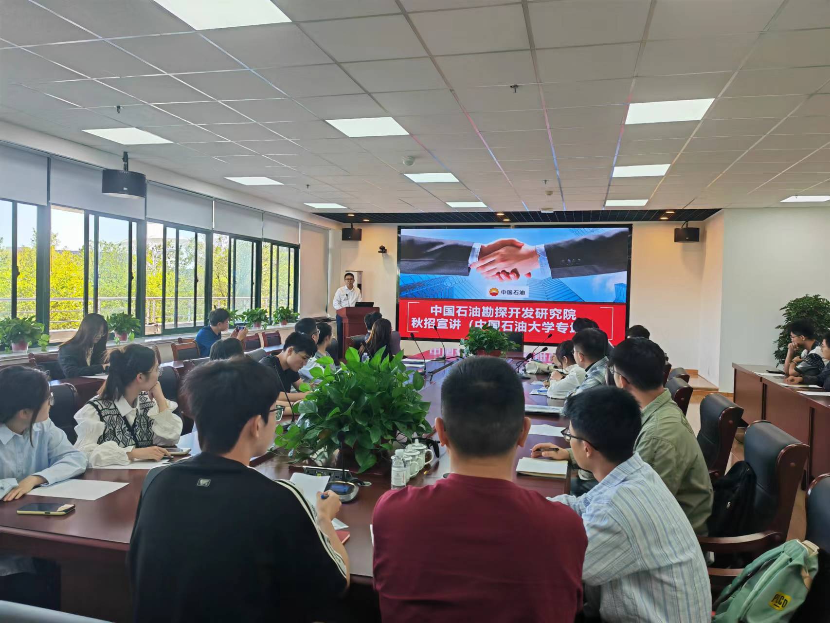 9月22日,中国石油勘探开发研究院人力资源部主任(部长)、资源勘查工程专业2001级校友梁坤来院开展毕业生招聘宣讲。