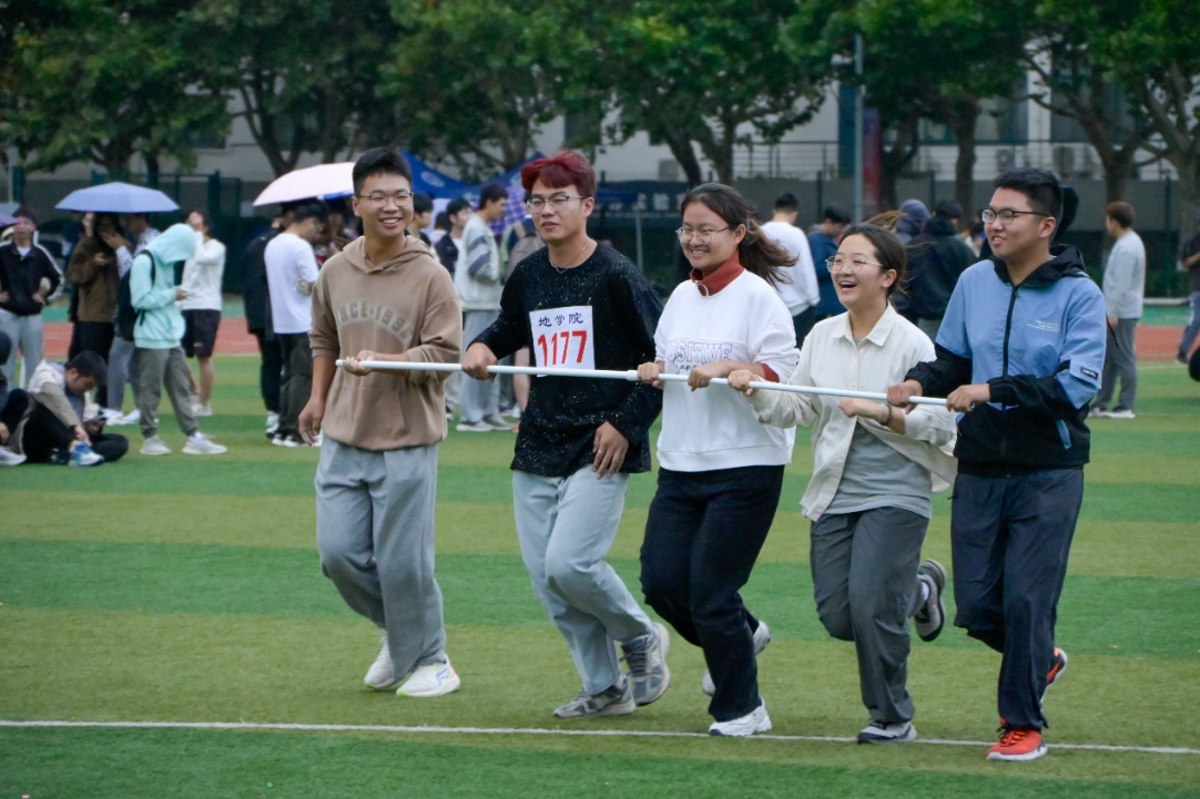 本次运动会设立100米、200米、400米等七类径赛项目以及跳远、标枪、跳高等六类田赛项目,各类比赛精彩纷呈。径赛跑道上他们风驰电挚,坚持不懈;田赛赛场上他们或纵身一跃,或奋力一抛,一次次向着更高成绩爆发出自己的力量。尽管赛中下起了连绵秋雨,但新葡的京官网学生运动员仍坚持完赛,在一声声“加油”中冲刺、跳跃,展现勘探尖兵们不惧风雨的精神风貌。