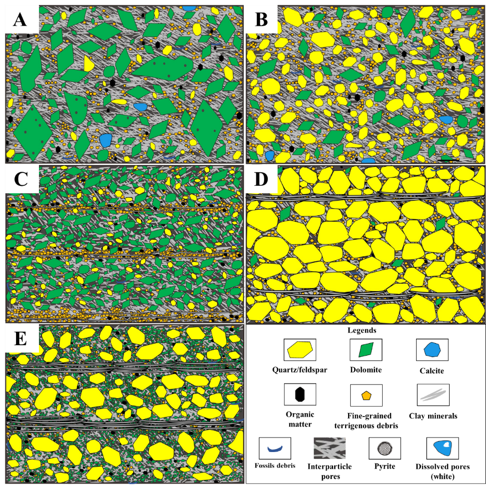 图1不同岩相孔隙系统模式图