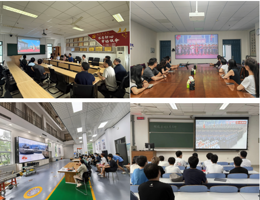 各报告厅、会议室和办公室内,气氛庄严肃穆。学院领导、各系师生,神情专注观看大会盛况。随着庄严的国歌声响起,全体师生起立同唱,表达对祖国的无限热爱与崇高敬意。直播过程中,大家认真聆听中共中央总书记、国家主席、中央军委主席习近平的重要讲话,深刻领会中国人民抗日战争在世界反法西斯战争中的东方主战场重要地位及其伟大历史意义,共同追忆中华儿女同仇敌忾、共赴国难的峥嵘历程,感悟铭记历史、缅怀先烈、珍爱和平、开创未来的重要意义。