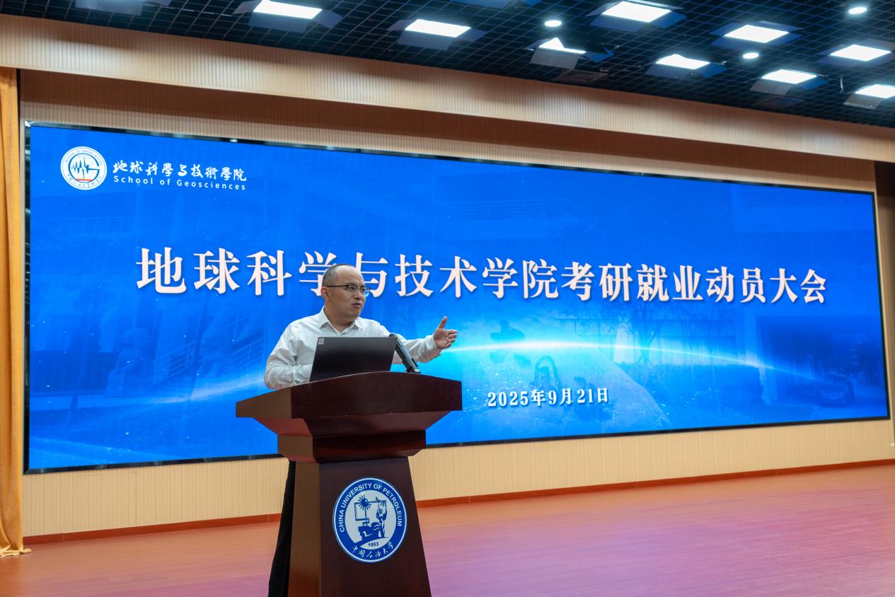宗兆云围绕“平台赋能、导师引路、行业导向”的关键逻辑,详细介绍了学院的师资配置、科研平台布局及研究生培养成果。针对考研与就业规划,他着重强调油气行业的不可替代性,选择油气勘探行业升学就业是新葡的京官网学子履行服务国家石油安全战略使命的要求,同时还可以获得稳定且前景广阔的职业发展平台。在随后的提问环节中,学生踊跃提问,宗兆云逐一耐心回应每个问题,现场互动氛围热烈,同学们受益匪浅。