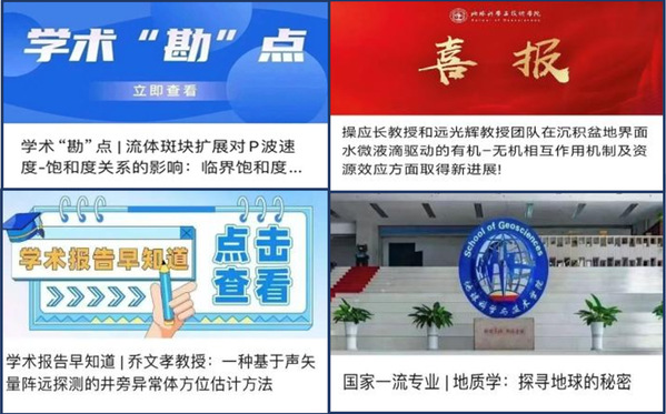 “科研进展”与“学术交流”板块作为学院官网两大板块,聚焦学院学术科研工作动态,实时传递高水平科研前沿,为院内外师生构建了一个即时了解学院科研成果的通道。此外,学院搭建师生交流平台,建立常态化沟通机制,四十余期“师生勘探+”系列活动,挖掘学院学科建设、活动开展、师生风采等各类新闻亮点,深耕学术动态,在院内形成潜心学术、追求卓越的氛围。