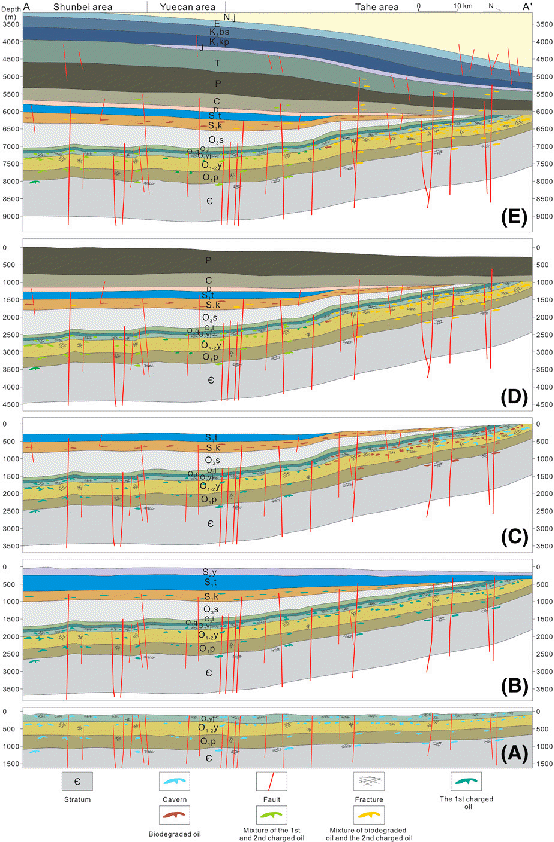 图1. 塔里木盆地塔北地区深层碳酸盐岩油气充注模式汇总