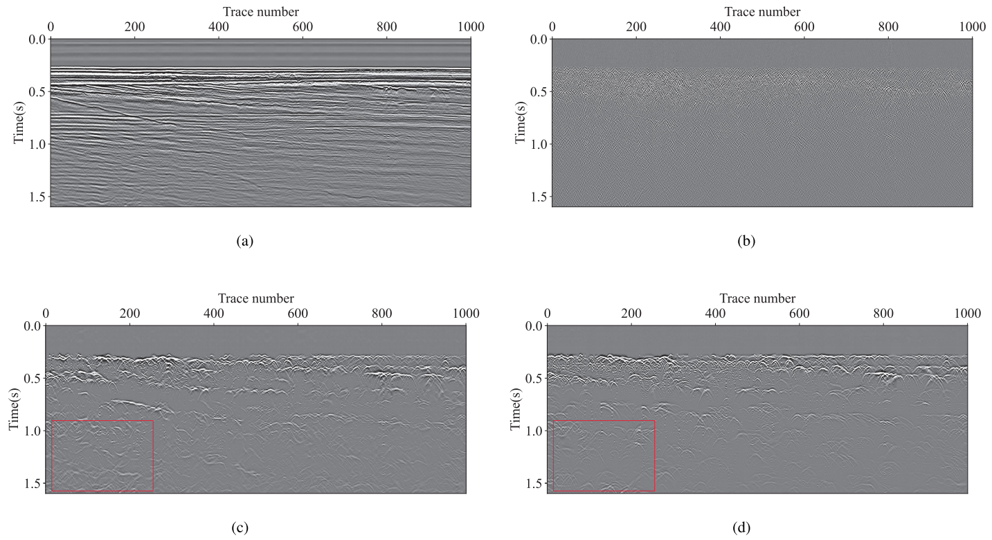 地震绕射波携带了地下地质目标(如尖灭、断层和裂缝等)的重要波场信息。然而,由于绕射波振幅相对较低且与反射波场重叠,在常规地震成像过程中通常被忽略或难以利用。利用分离出的绕射波进行成像,可以显著增强复杂地质目标的图像分辨率。传统方法(如PWD)和常规深度学习方法虽已用于绕射波分离,但在处理复杂数据时精度往往受限。