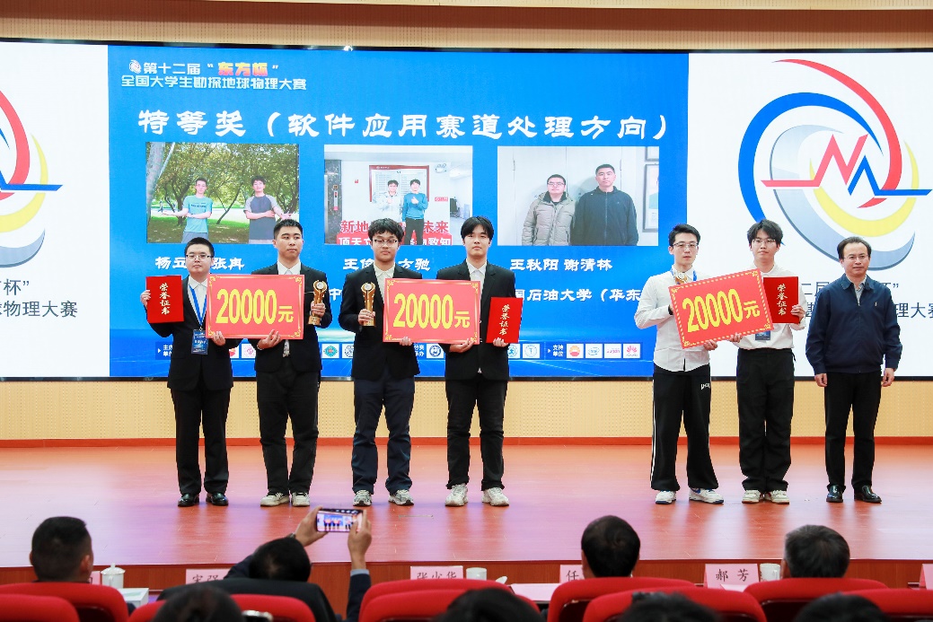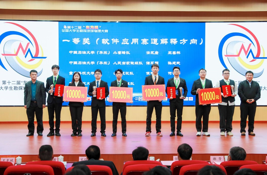 本届大赛自7月11日启动以来,得到全国高校广泛响应,吸引了28个省市209所院校的917支队伍报名参赛,累计收到完赛作品341项。各分赛区组建专业评审专家组开展预赛遴选,最终确定41所高校的128项作品晋级决赛。为确保评审工作的专业性与权威性,决赛评审组由来自中国石油、中国石化、中国海油、中国地质科学院、华为技术有限公司、中科曙光等单位的30名行业专家组成。经过严格评审,本届大赛共评选出特等奖7项、一等奖26项、二等奖89项。大赛颁奖典礼上还进行了东方Geoeast软件教学版免费试用授权交接仪式。